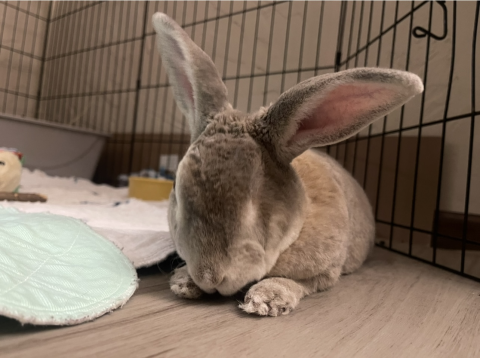 Hi, I’m Georgia! I’m proud to be IHRS’s 1500th rescue, and wow—am I ever grateful! My journey started when I was found outside. I darted out in front of a car, and luckily the driver realized I wasn’t a wild bunny and stopped to scoop me up. They knew I needed help right away and contacted IHRS. I was in rough shape: just six weeks old, with a severely ulcerated eye sealed shut, bite marks on my back, and parasites. I spent the next two months visiting my vet friends often. They healed my eye as best they could, but it just didn’t develop properly—so I had it removed. The good news? It doesn’t bother me at all now! Now that I’m all healed, I’m making up for lost time. I am everything rabbit: I zoom, I binky, I dig, chew, jump, and play with toys. I also like my naps during the day. Because of my eye, I’ll need a special adopter who is ready to bunny-proof like a pro. I run with such excitement that I sometimes crash into things—so a safe space is a must! Even though I had a tough start, you’d never guess it. I’m super friendly, love attention, and can’t get enough pets. Just remember to approach me from my good side—I get startled easily and may lunge if I’m surprised. I also prefer when you’re down at my level—I’ll come right up and put my nose in your face! I’m ready to find my forever family. Could it be you?