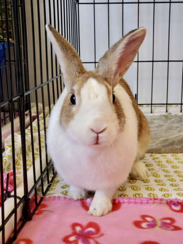 Marie was a good mama and has finished raising her babies. She is a curious, friendly, rabbit who loves to be petted.